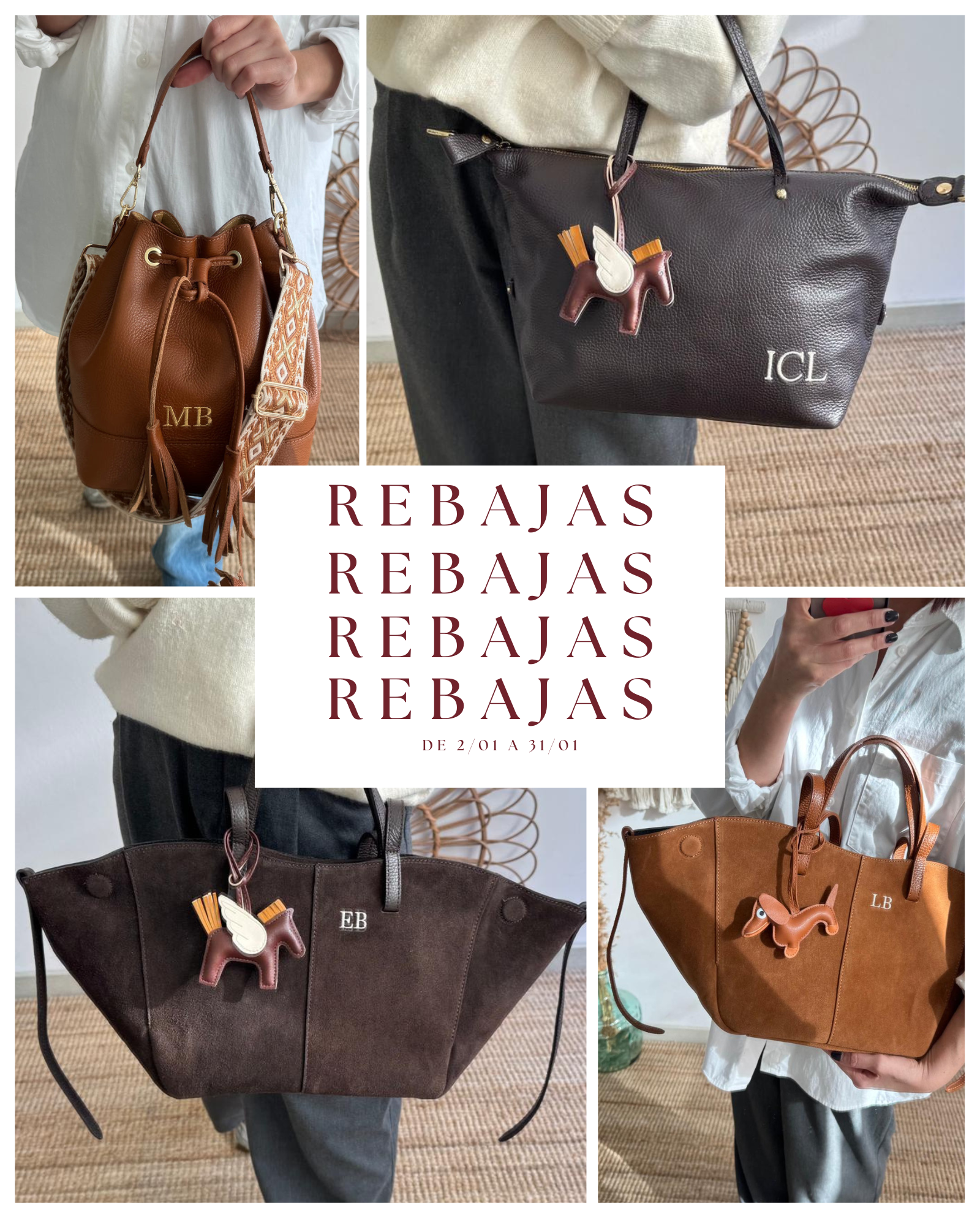 RebajadoBolso piel camel iniciales bordadas