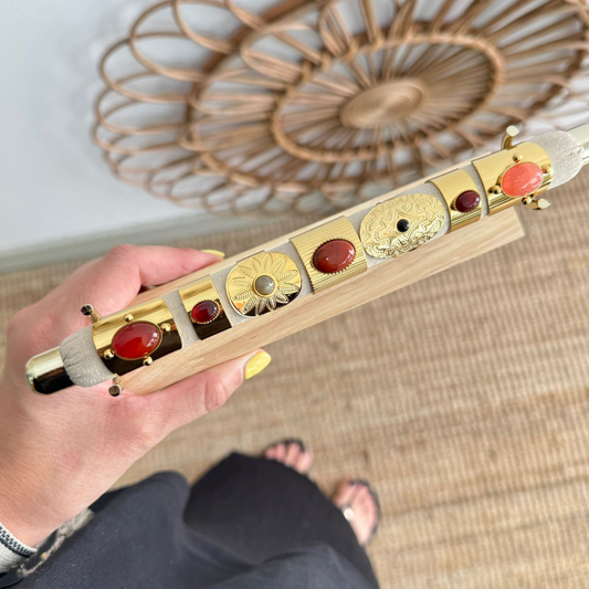 Bandolera loneta coral iniciales bordadas con correa étnica