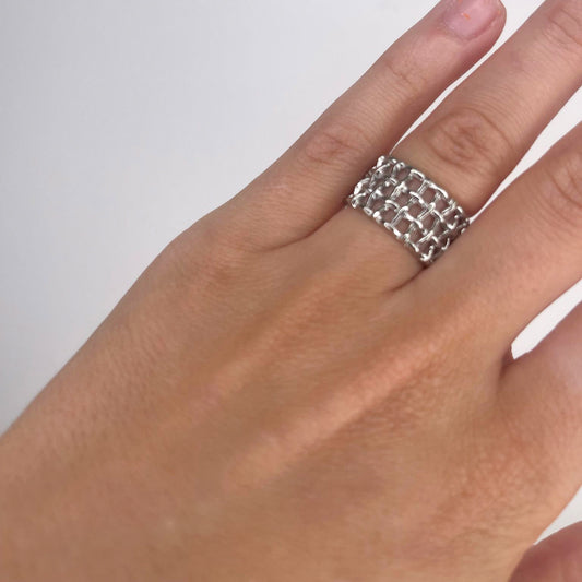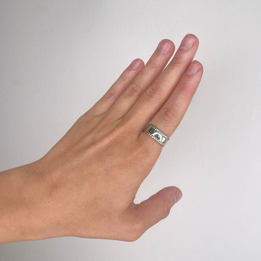 ANILLO ACERO LINEAS IRREGULARES PLATEADO