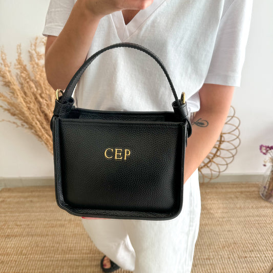 Bolso cuadrado piel negro iniciales bordadasPrecio habitual A partir de €73,00Precio habitualPrecio unitario por-