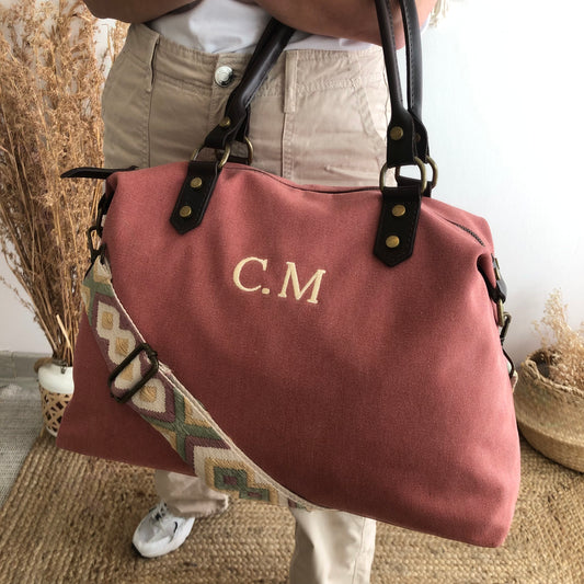 Bolso combinado loneta y piel coral iniciales bordadas con correa étnicaPrecio habitual €77,00Precio habitualPrecio unitario por-