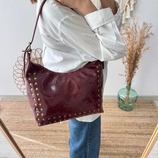 Bolso tachuelas piel granate iniciales bordadasPrecio habitual €75,00Precio habitualPrecio unitario por