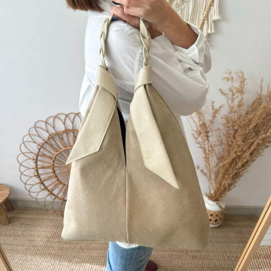Bolso serraje asa trenza en piel taupePrecio habitual €89,00Precio habitualPrecio unitario por-