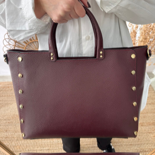 Bolso shopper tachuelas piel granatePrecio habitual A partir de €89,00Precio habitualPrecio unitario por-