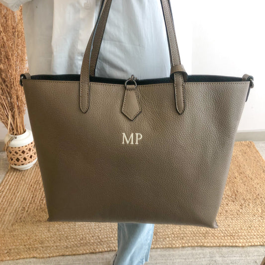 Bolso shopper piel taupe cierre iniciales bordadasPrecio habitual €89,00Precio habitualPrecio unitario por-