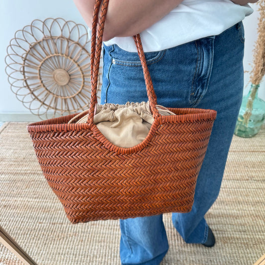 Capazo de piel trenzada camel pequeñoPrecio habitual €134,00Precio habitualPrecio unitario por-