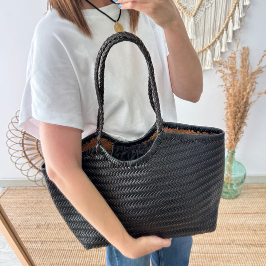 Agotado AgotadoCapazo de piel trenzada negroPrecio habitual €149,00Precio habitualPrecio unitario por-