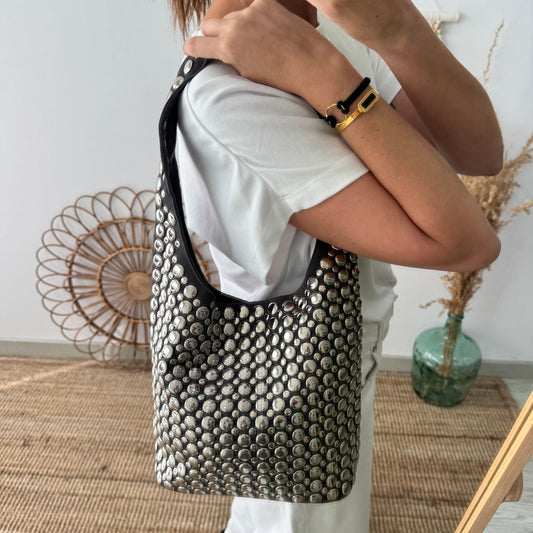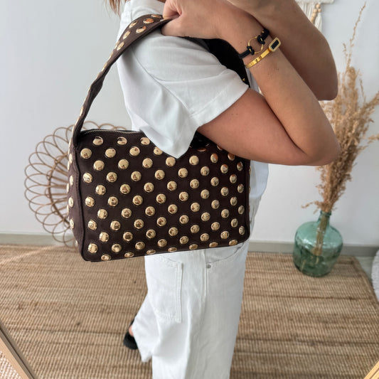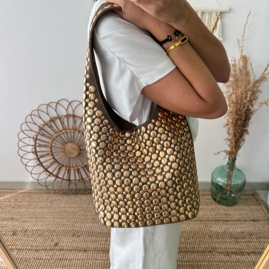 Bolso Hobo de Flecos en Piel y Serraje marrón
