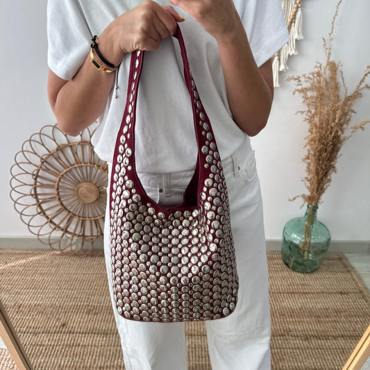 Black FridayBolso hobo granate con tachuelas plateadas
