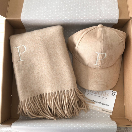 Black FridayPack regalo bufanda y gorra beige personalizadas