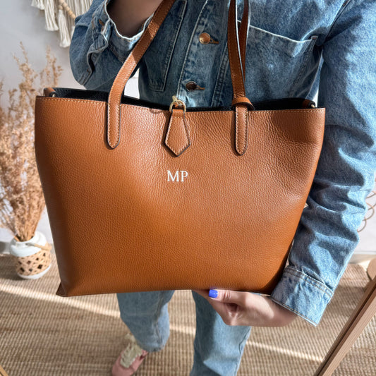 Shopper grande piel camel cremallera personalizado iniciales bordadas