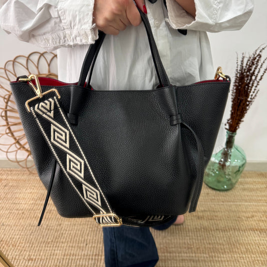 AgotadoBolso piel lazos negro