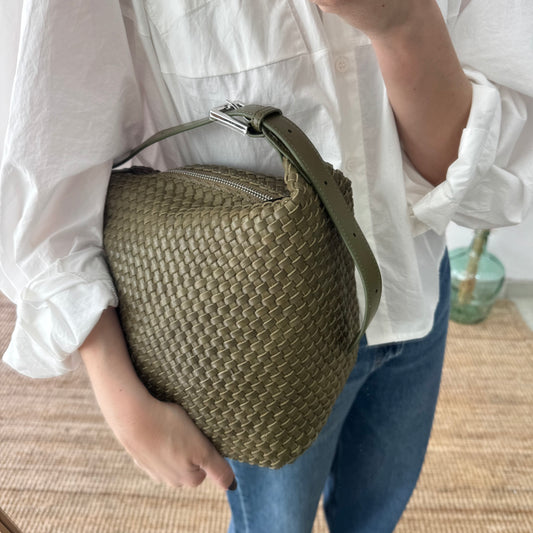 Bolso saco en piel trenzada cremallera caqui