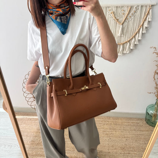 Bolso shopping piel camel claro