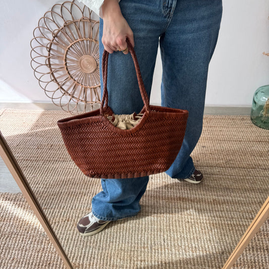 Capazo de piel trenzada camel pequeño