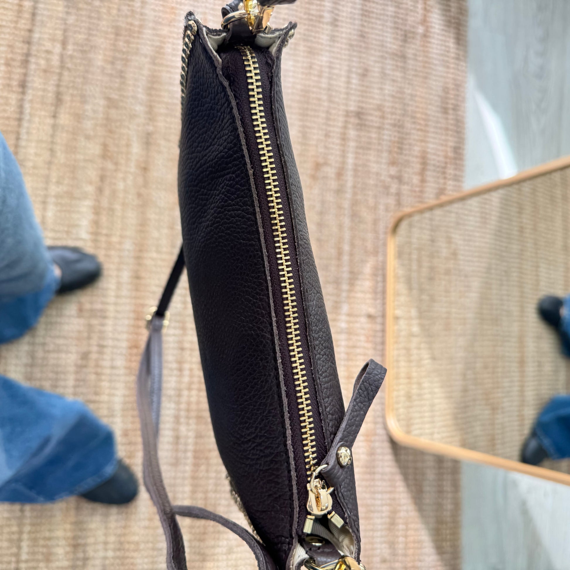 La bandolera en piel marrón es un bolso elegante y práctico, pensado para acompañarte en cualquier ocasión con estilo y comodidad.