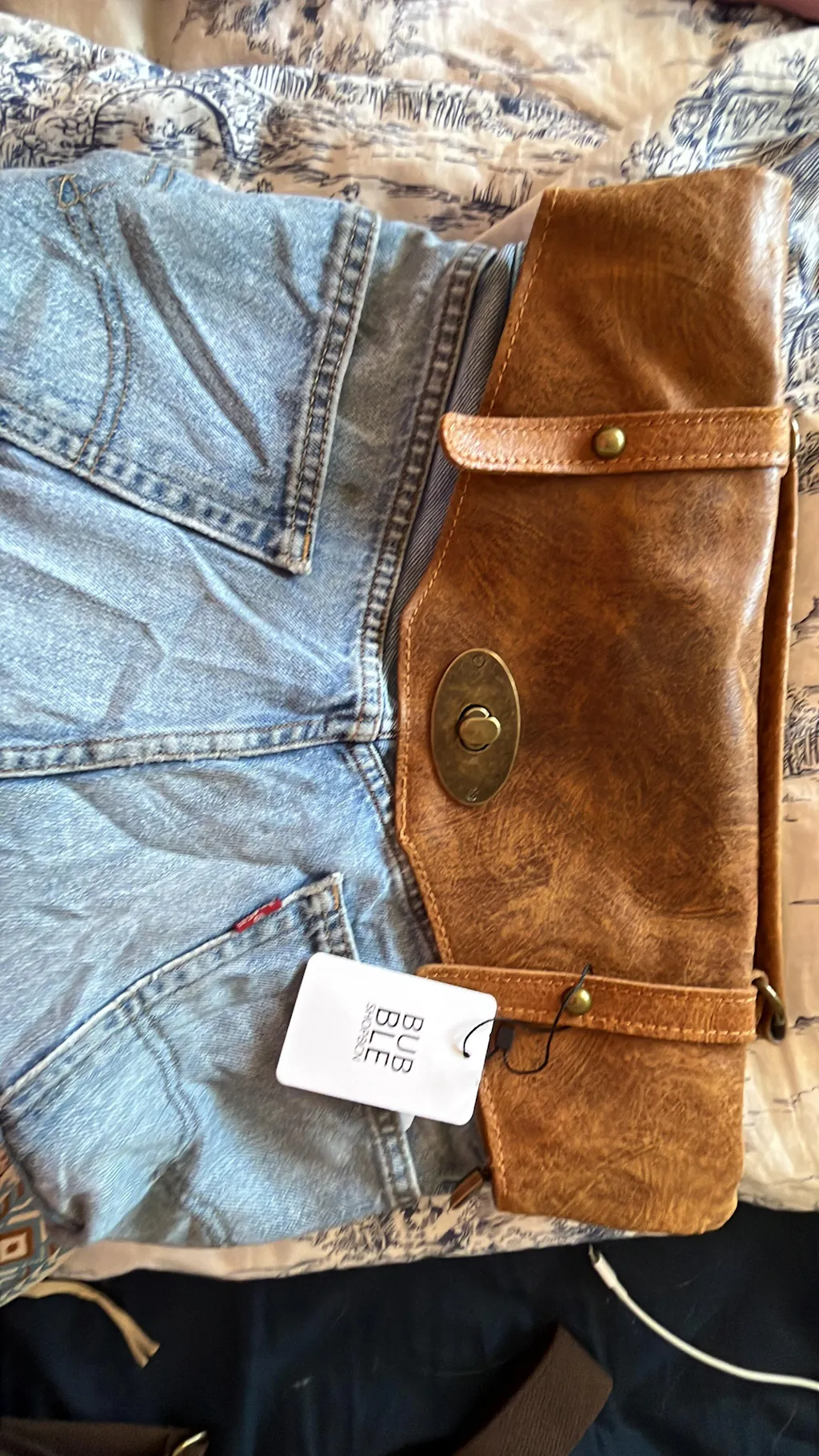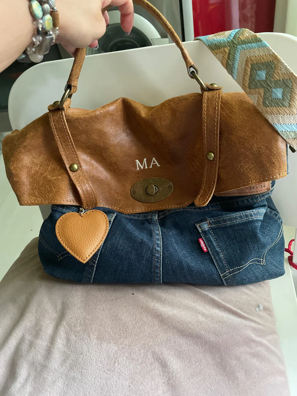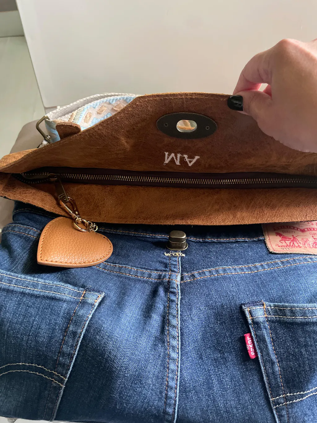 Amplio bolso de un y piel camel, precioso, con un cierre muy seguro , y personalizado con mis iniciales, la verdad que llama la atención.