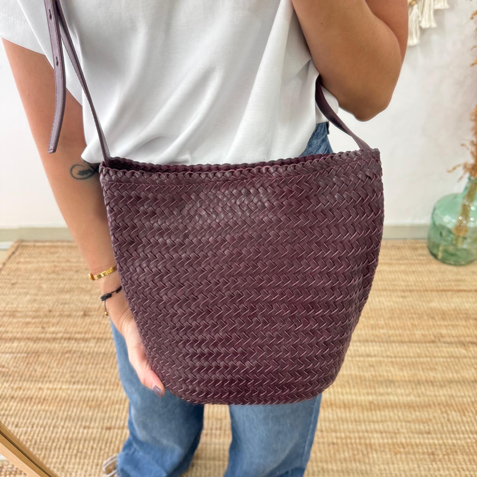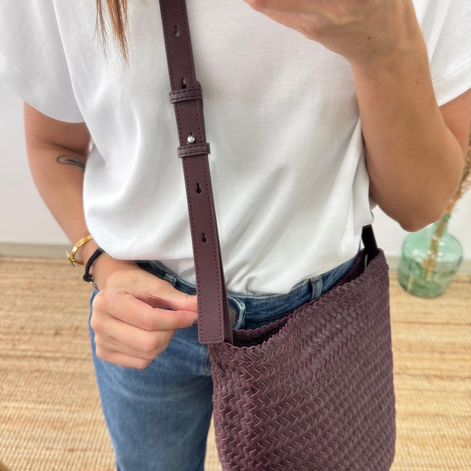 El Bolso saco en piel trenzada color burdeos es una pieza atemporal, elegante y funcional que combina la artesanía tradicional con un diseño moderno y versátil. Perfecto para acompañarte en el día a día con estilo.
