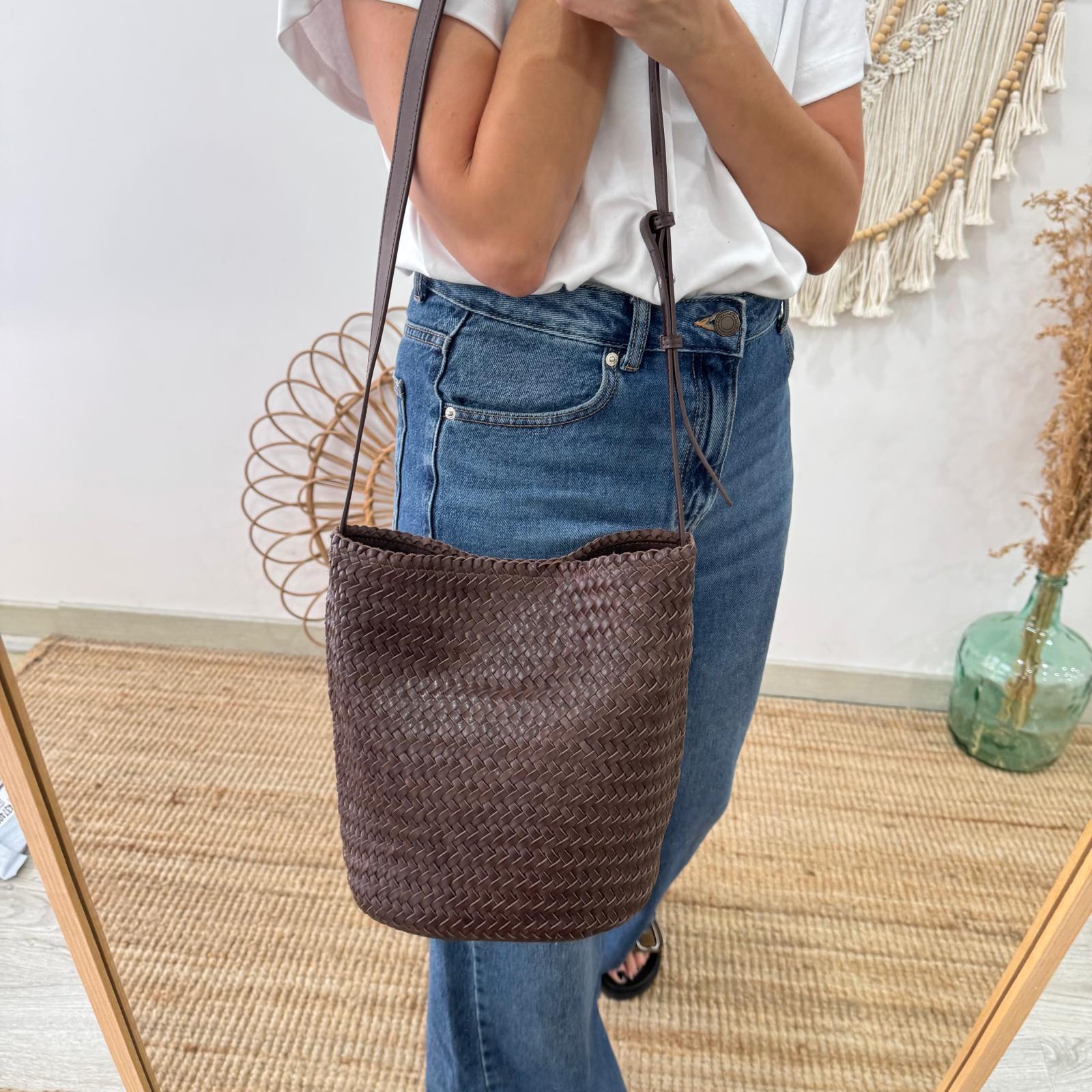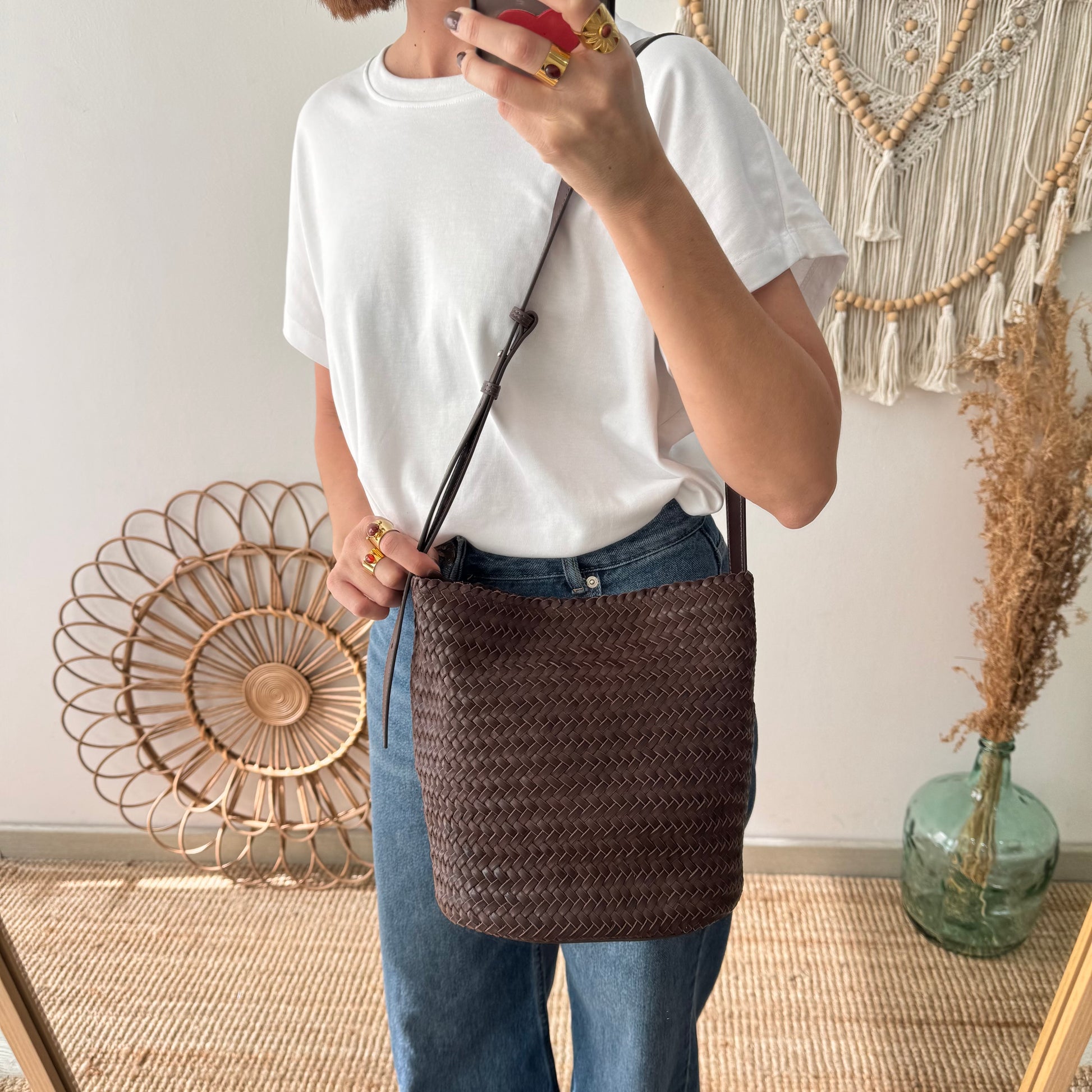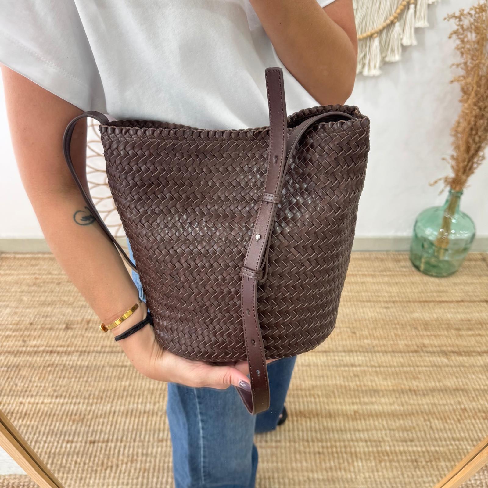 El Bolso saco en piel trenzada color marrón es una pieza atemporal, elegante y funcional que combina la artesanía tradicional con un diseño moderno y versátil. Perfecto para acompañarte en el día a día con estilo.