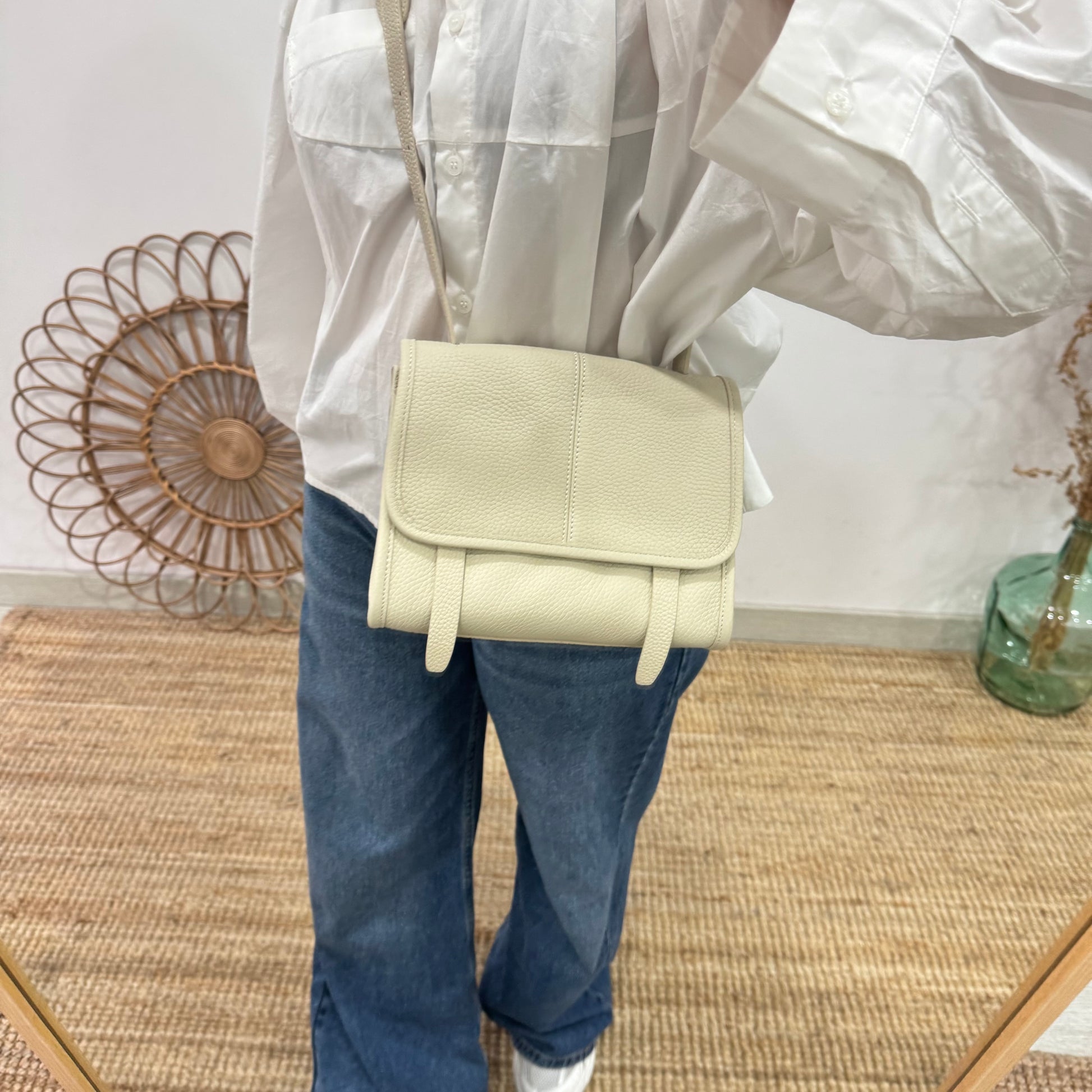 El bolso bandolera en piel beige es la esencia del estilo natural y luminoso. Su tono neutro y suave lo convierte en una pieza extremadamente versátil, ideal para quienes buscan un accesorio ligero visualmente que combine con toda la paleta cromática de su armario.