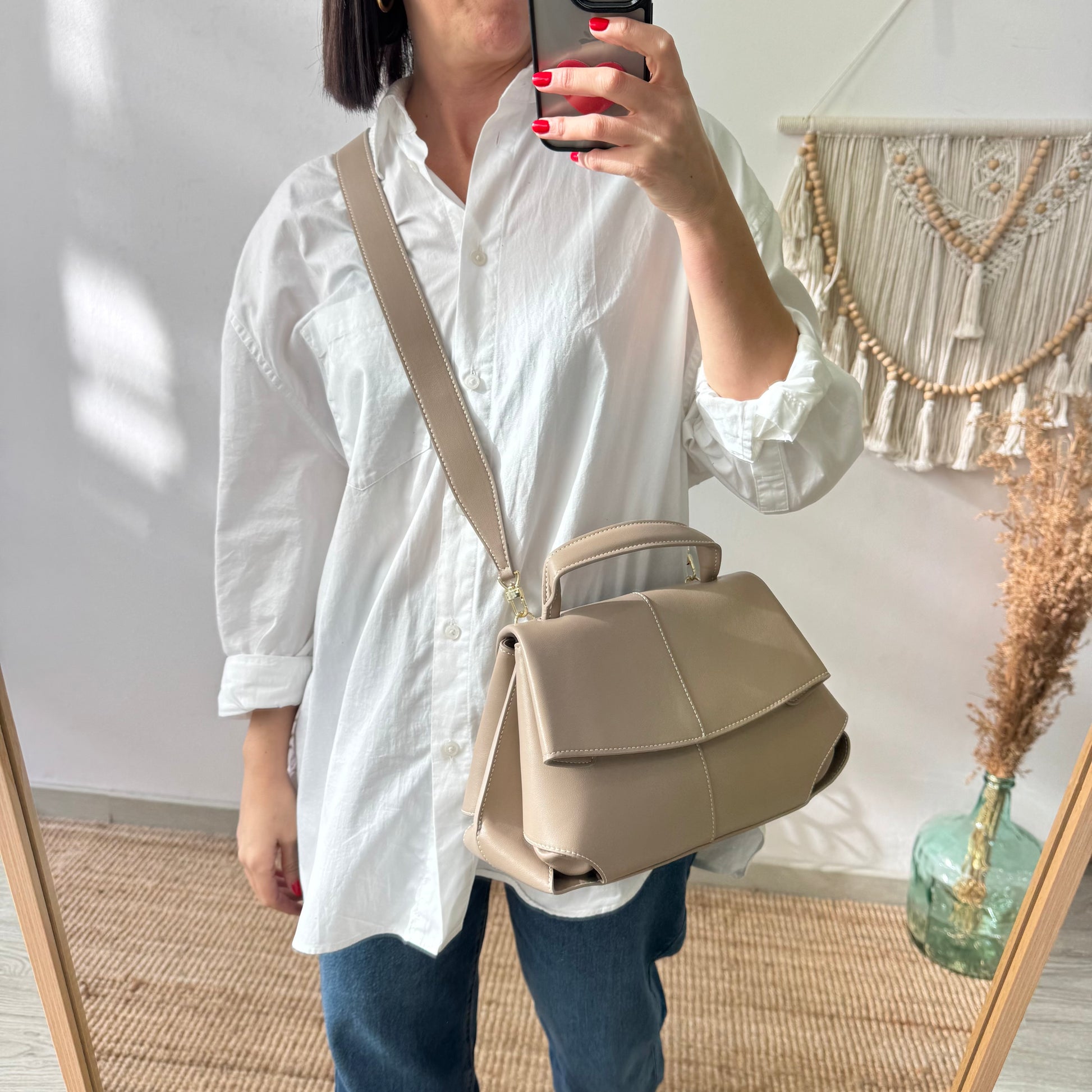 El Bolso Satchel Taupe es una pieza que une elegancia clásica y diseño moderno, pensada para acompañarte en tu día a día o en eventos especiales, aportando sofisticación y organización.