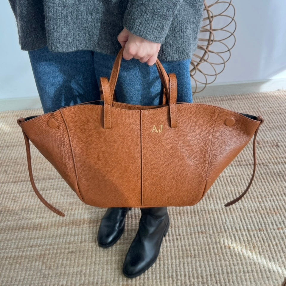 El Bolso Tote en piel camel combina diseño atemporal y funcionalidad, pensado para acompañarte en cualquier ocasión con estilo y comodidad.