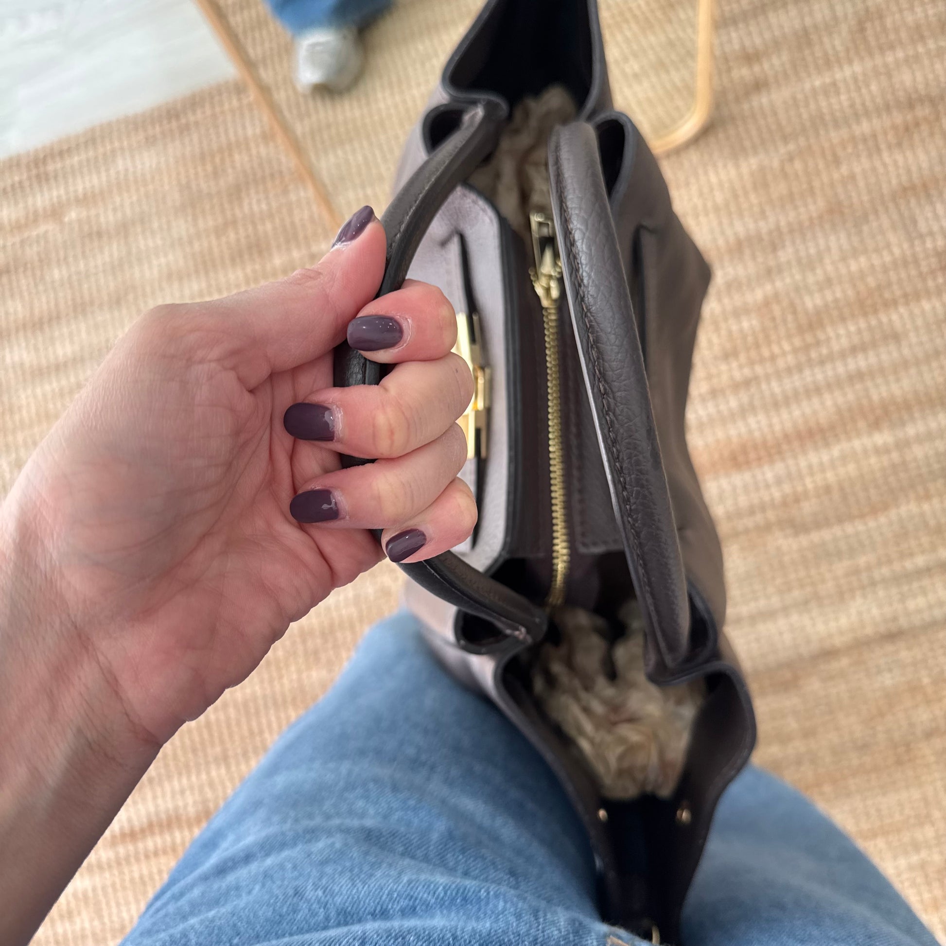 Después de usar gel hidroalcohólico, asegúrate de que tus manos estén completamente secas antes de tocar tu bolso. Este tipo de geles pueden afectar tanto a la piel como a los herrajes, causando oxidación o pérdida de color.