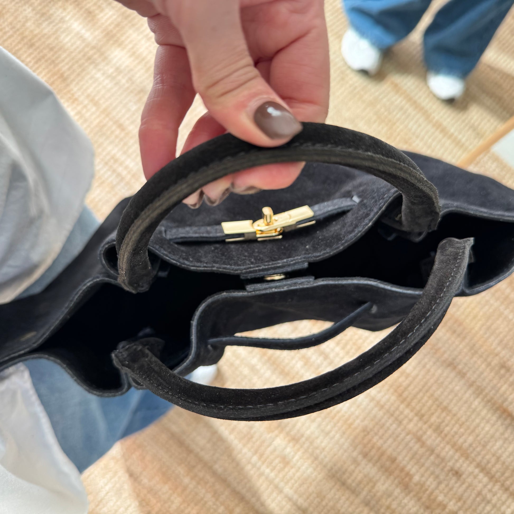 Nuestro bolso tote cierre de serraje en color negro para llevarlo con mucho estilo.