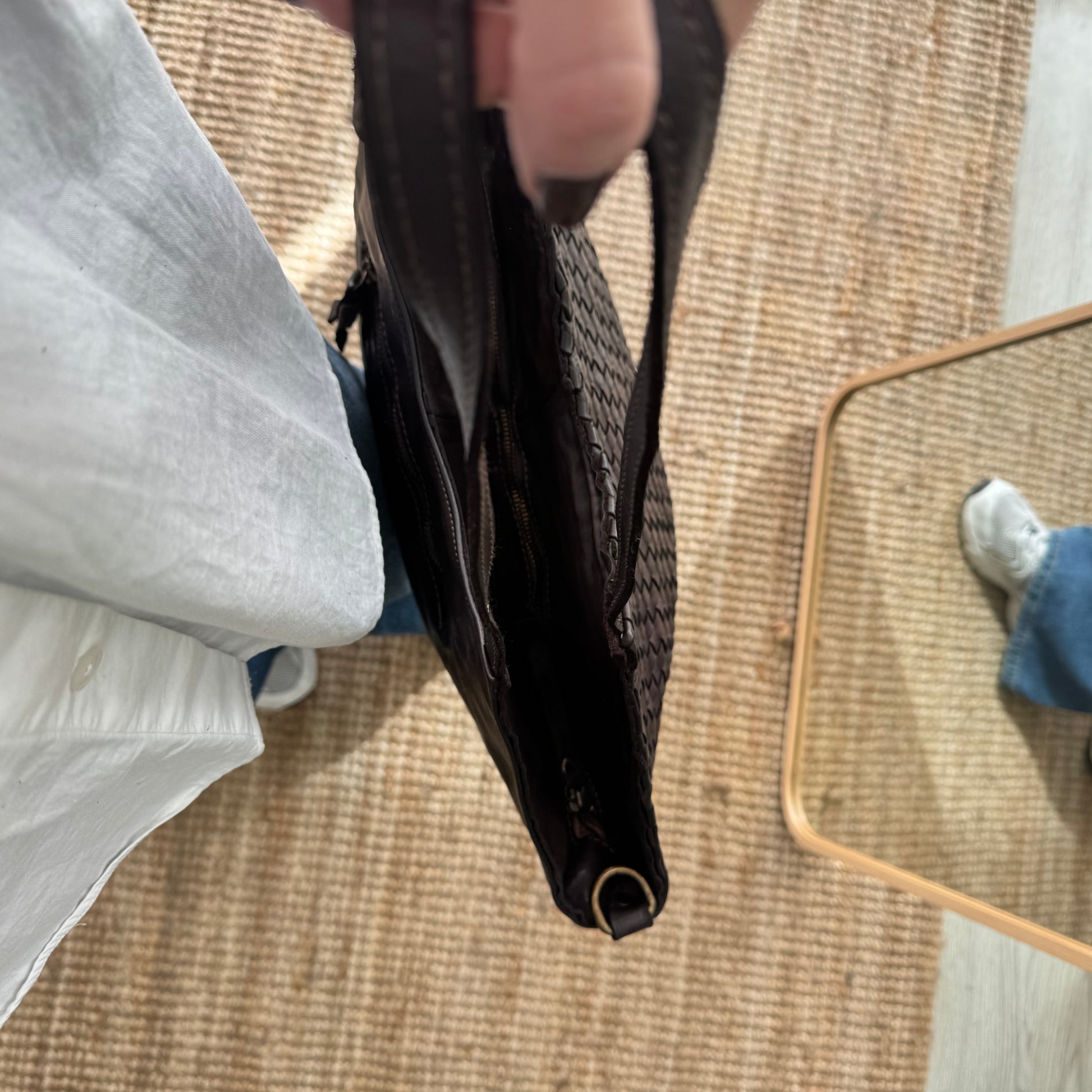 Destaca por su trenzado de piel trabajado de forma artesanal, que aporta textura y profundidad. Confeccionado en piel lavada, tratada mediante un proceso especial que consigue una textura extra suave y un acabado ligeramente envejecido. El resultado es una piel flexible, con movimiento y matices únicos en cada pieza. Fabricado en Italia, cuidando cada detalle.