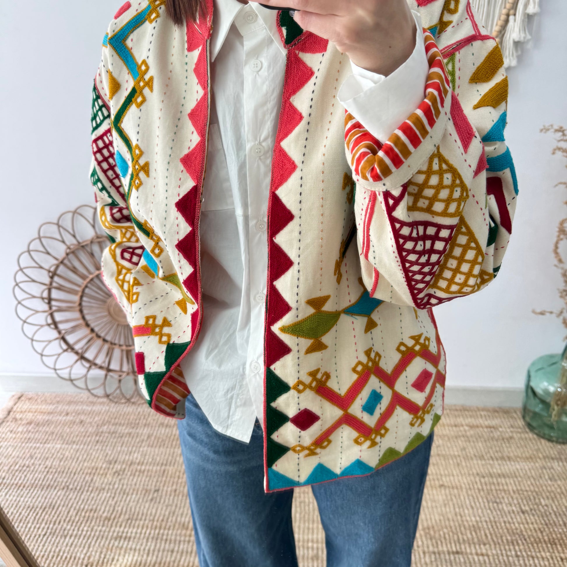 Chaqueta boho bordados geométricos