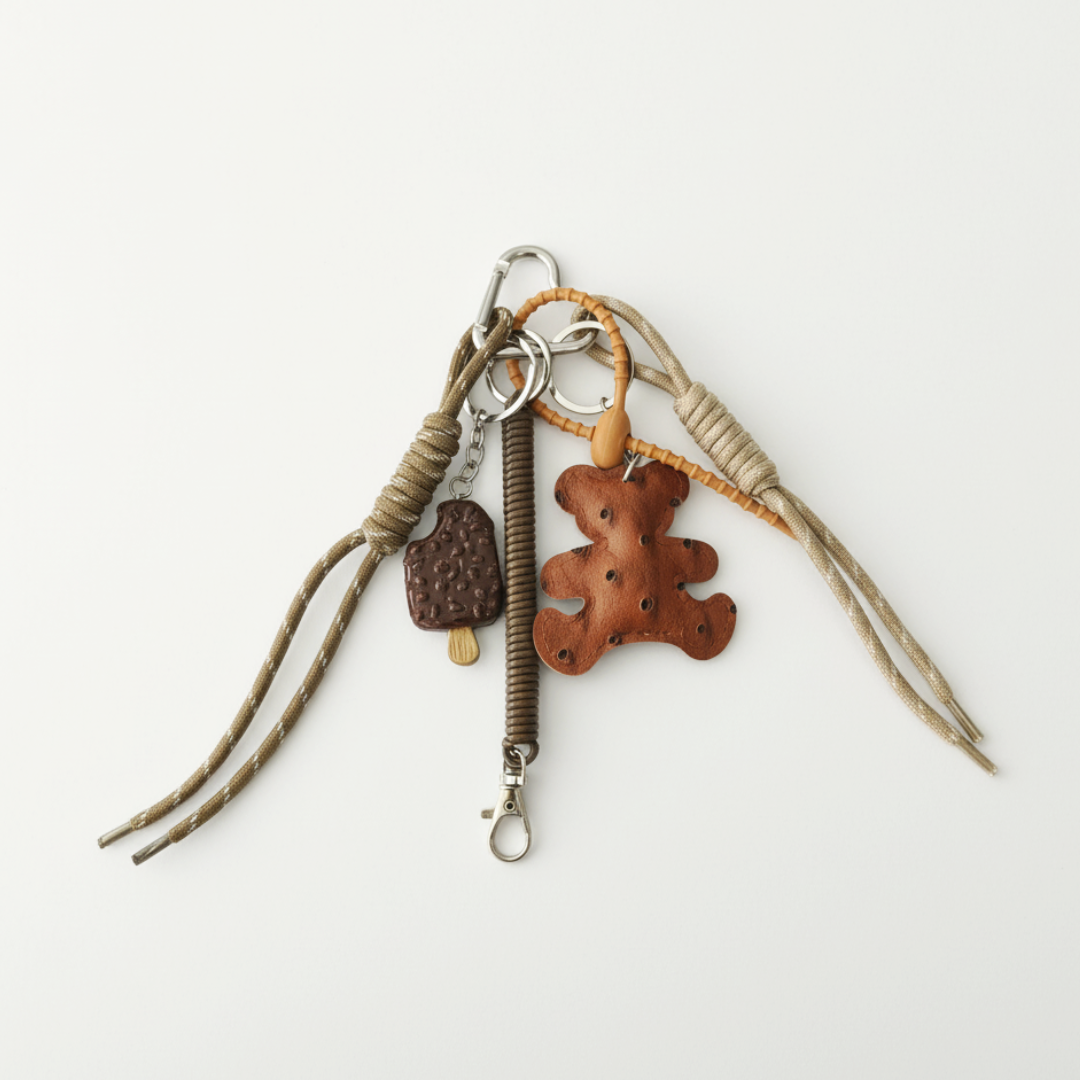 Dale un toque divertido y original a tu bolso con este charm único. Diseñado con detalles en PU, combina dos colgantes encantadores: un osito de efecto piel troquelada y un mini helado de chocolate que aportan un aire creativo y lleno de personalidad.
