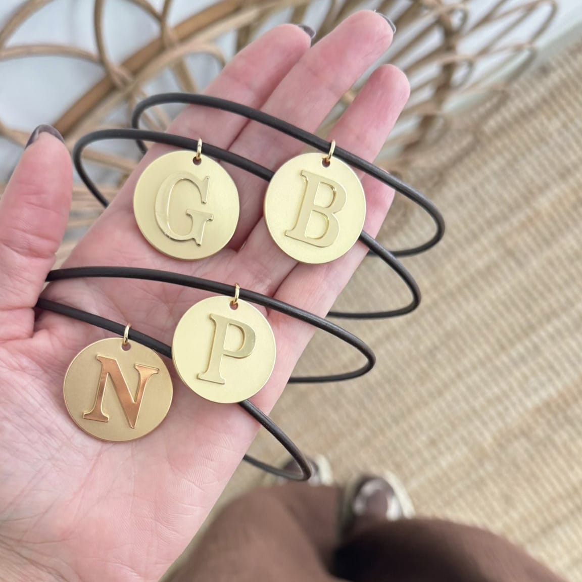Collar formado por un colgante circular metálico con baño dorado y un cordón negro resistente. Diseño ligero, ajustable y de acabado duradero.