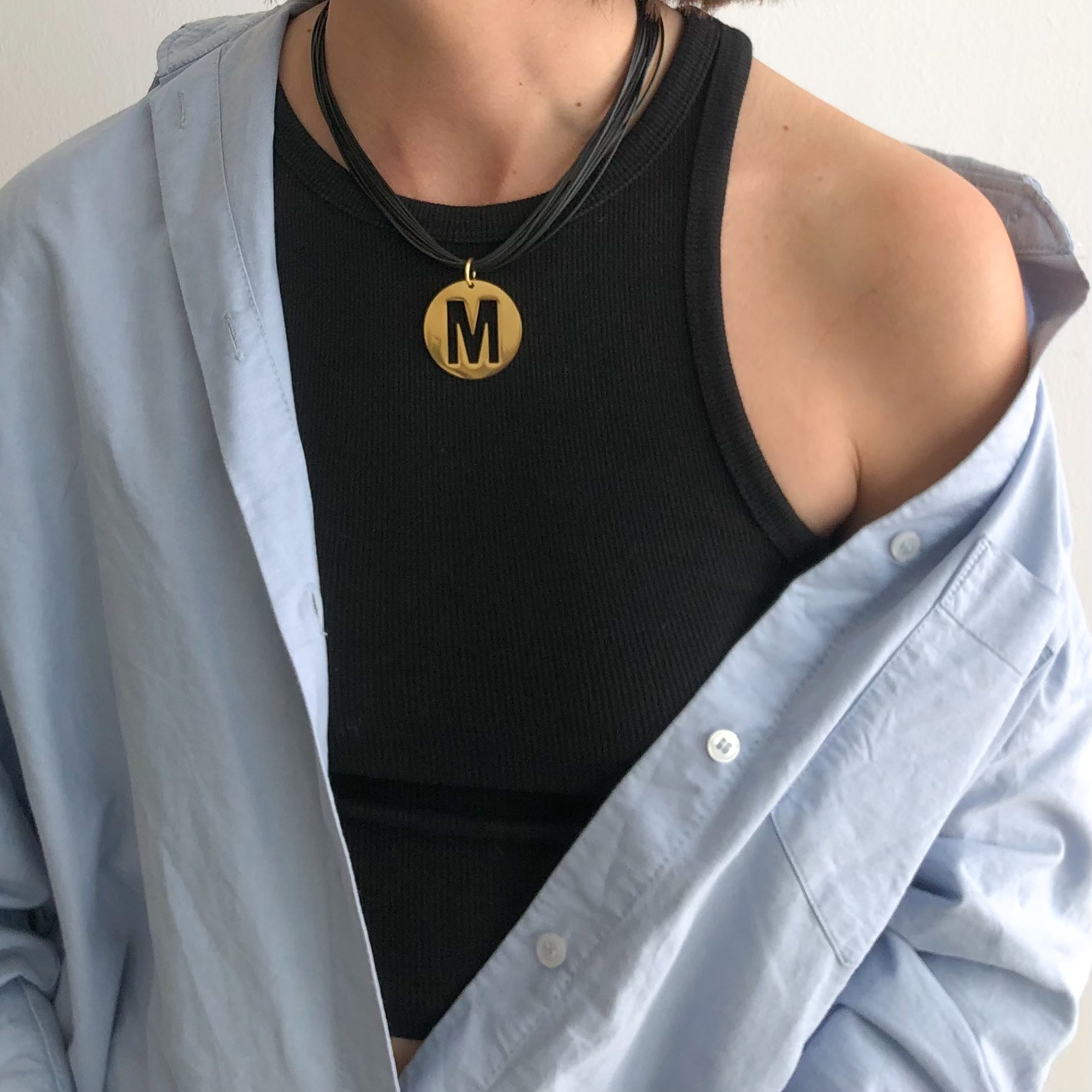 Collar de multi cordones con colgante en forma de circulo para personalizarlo con tu inicial, de diseño moderno, perfecto para cualquier ocasión.