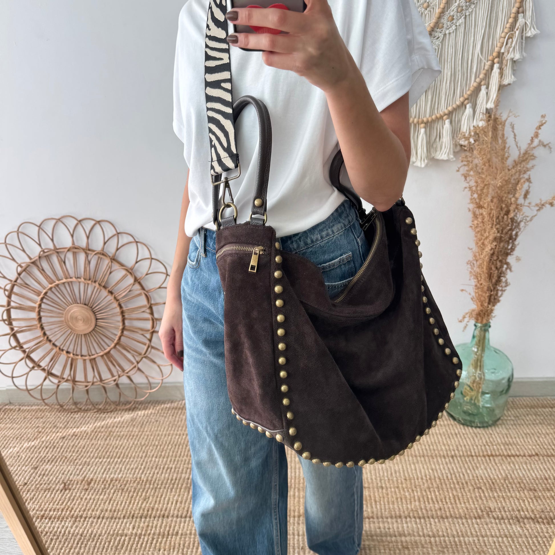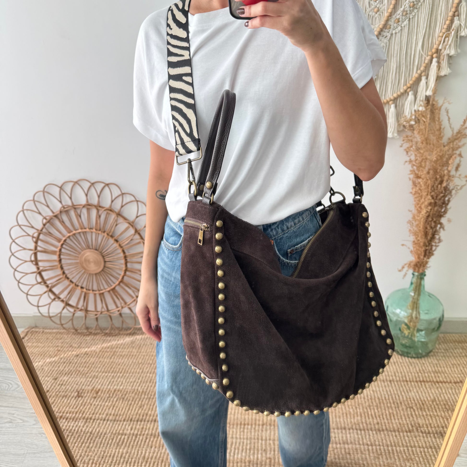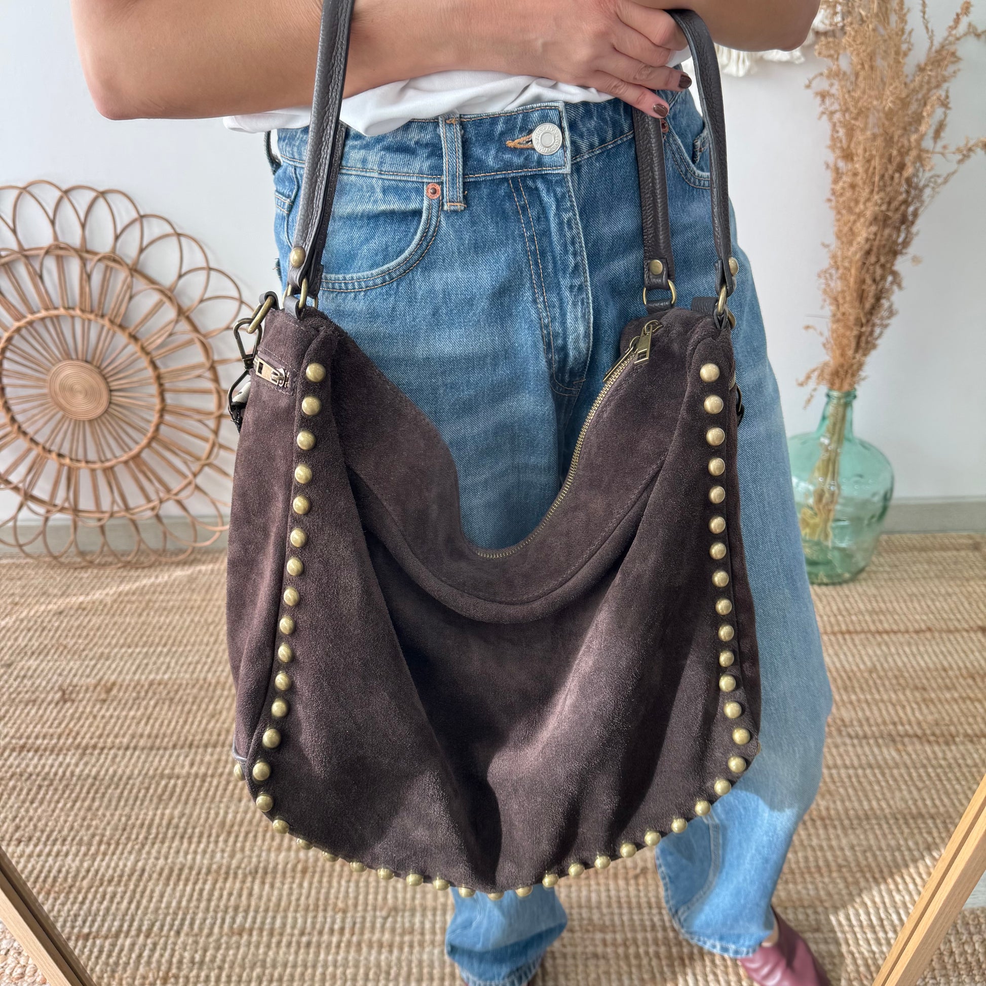 Esta saca de serraje en marrón es la elección perfecta para un look casual, desenfadado y muy atractivo.