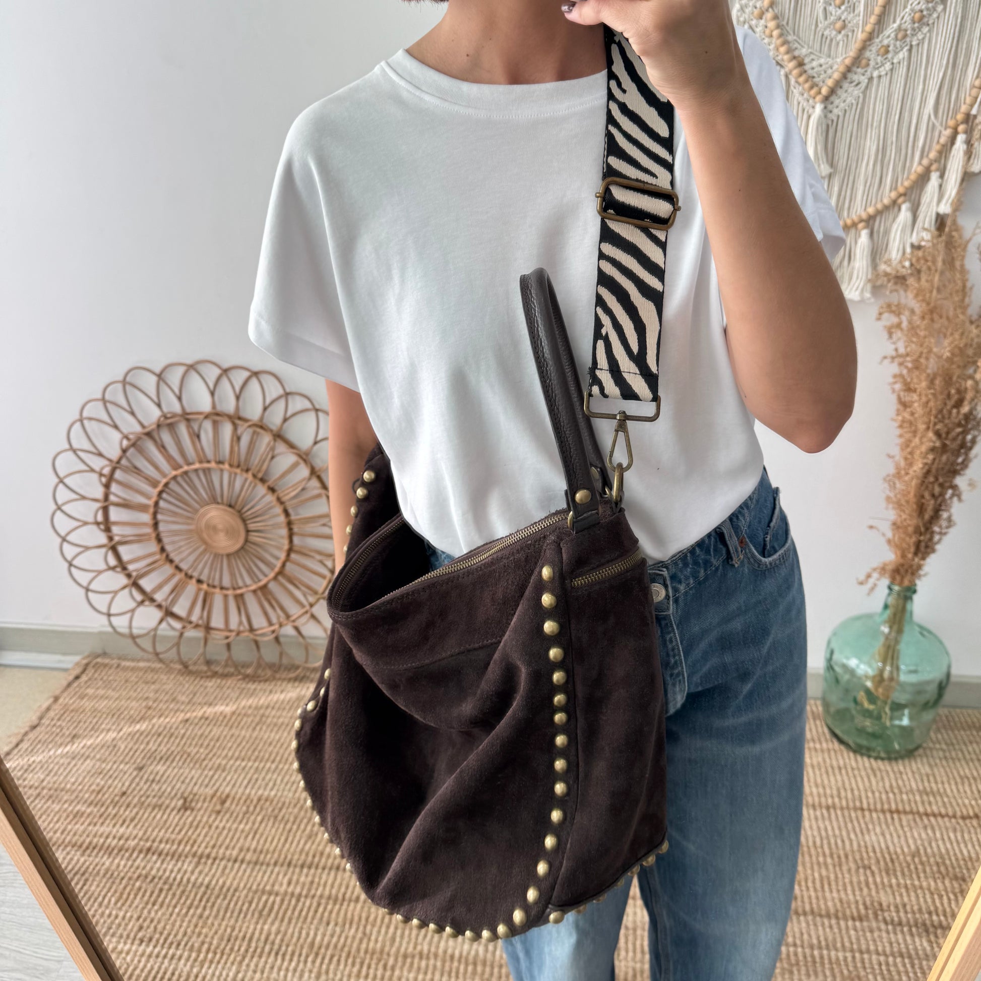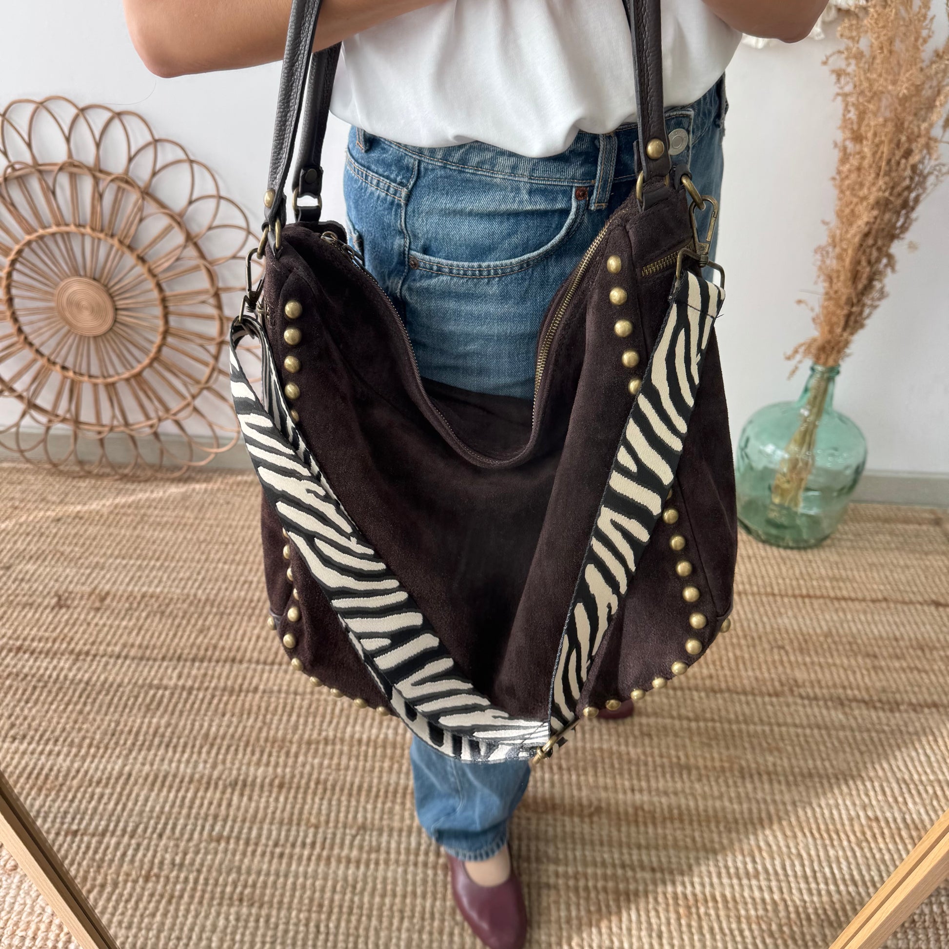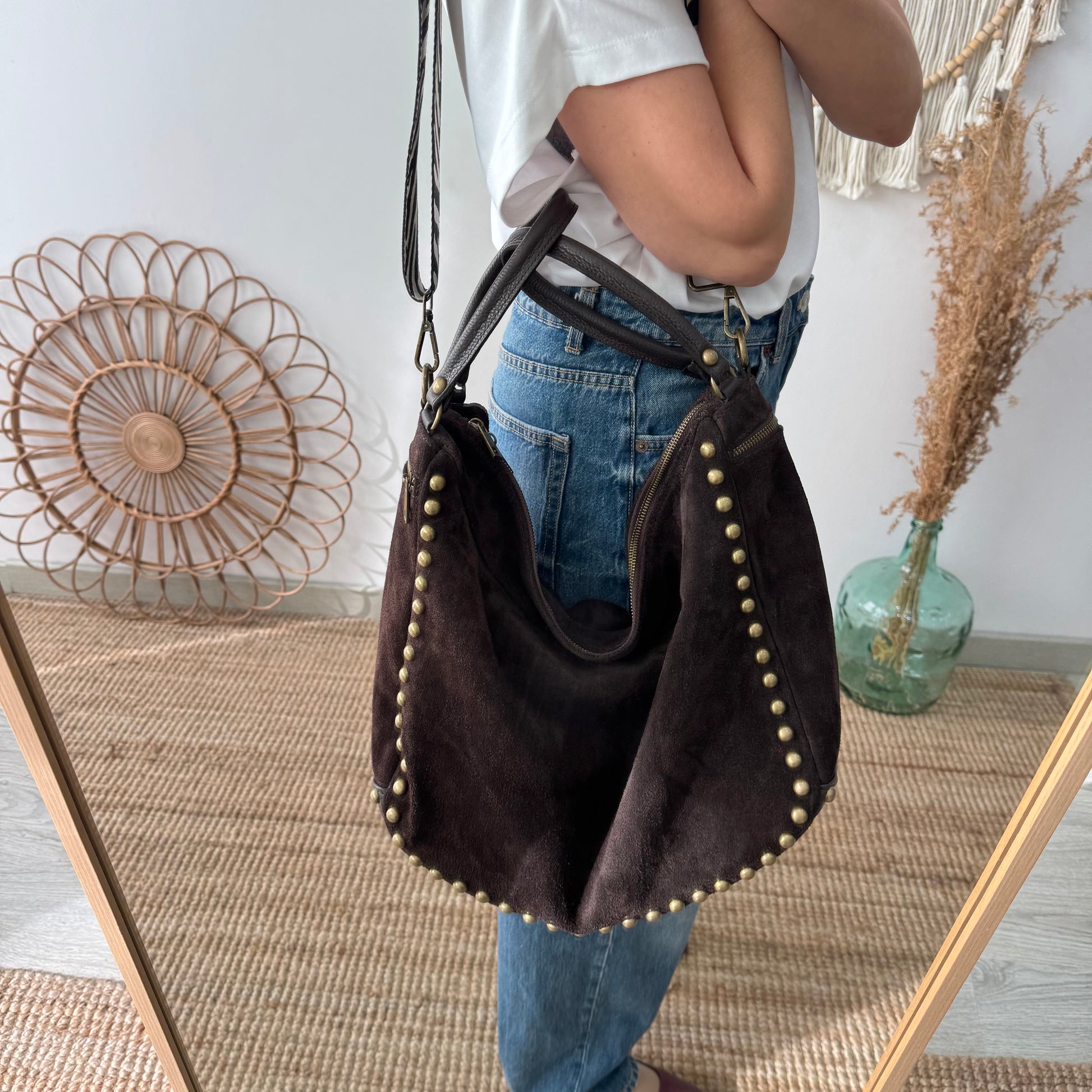 Esta saca de serraje en marrón es la elección perfecta para un look casual, desenfadado y muy atractivo.