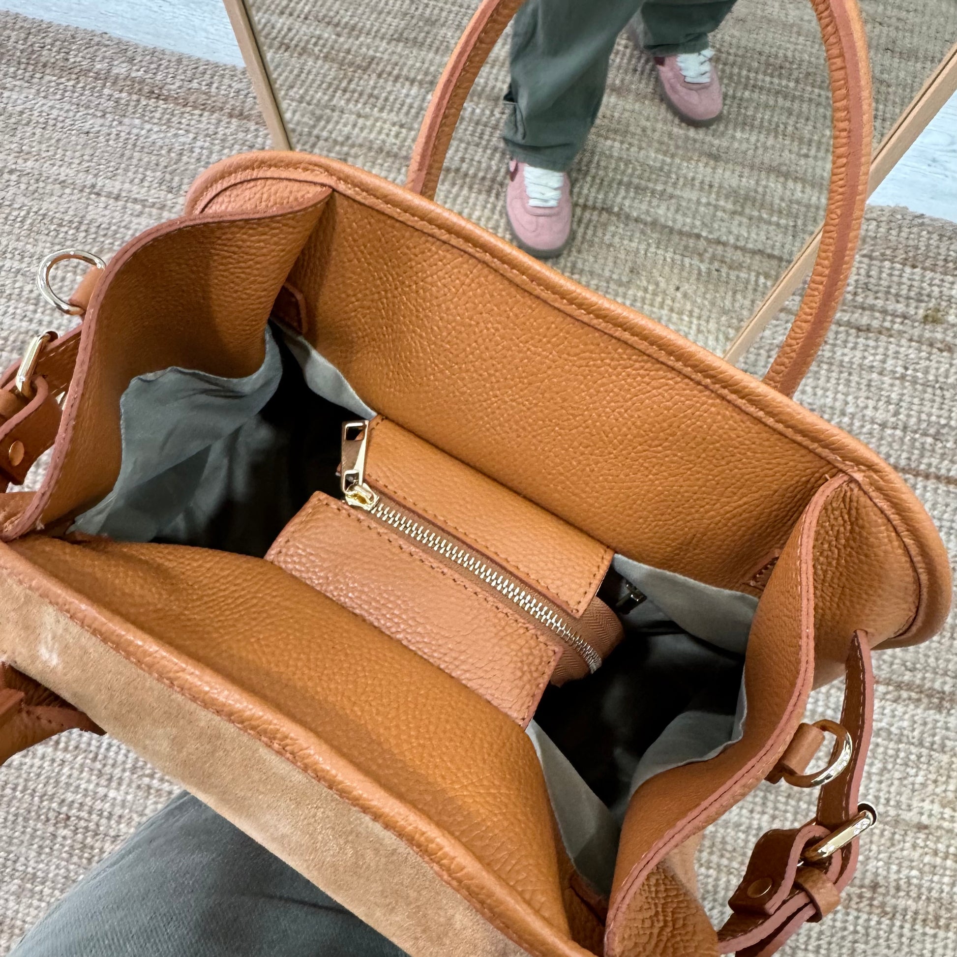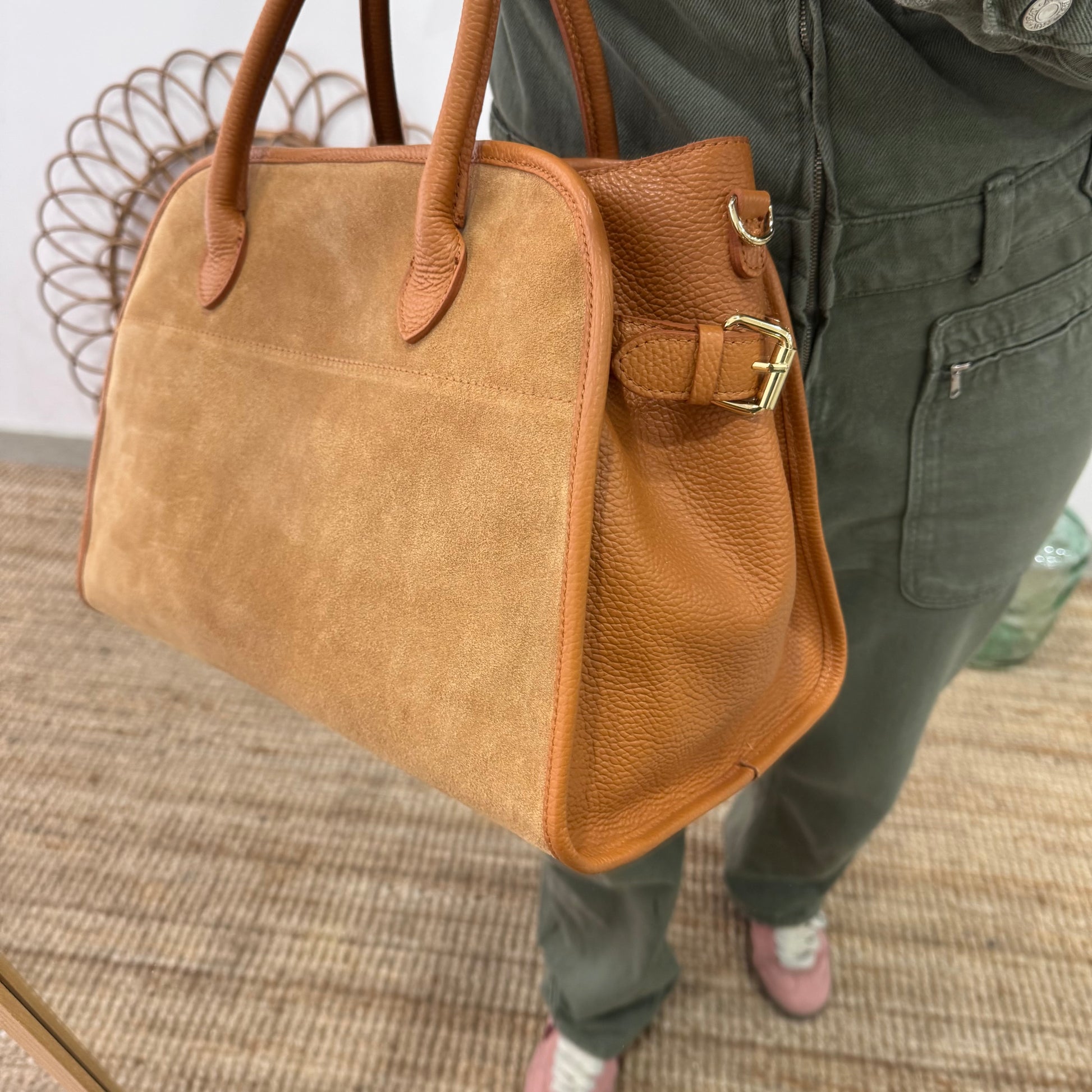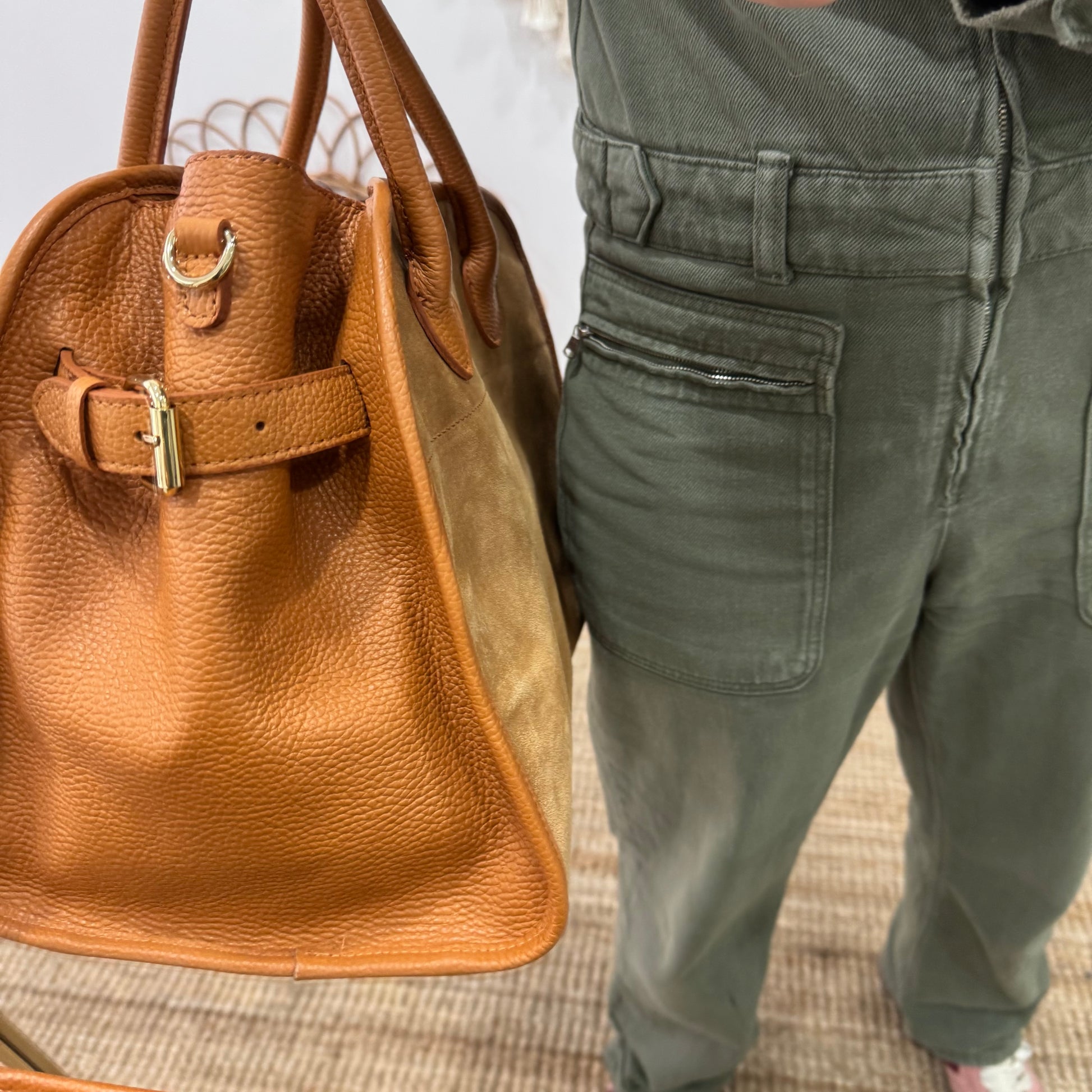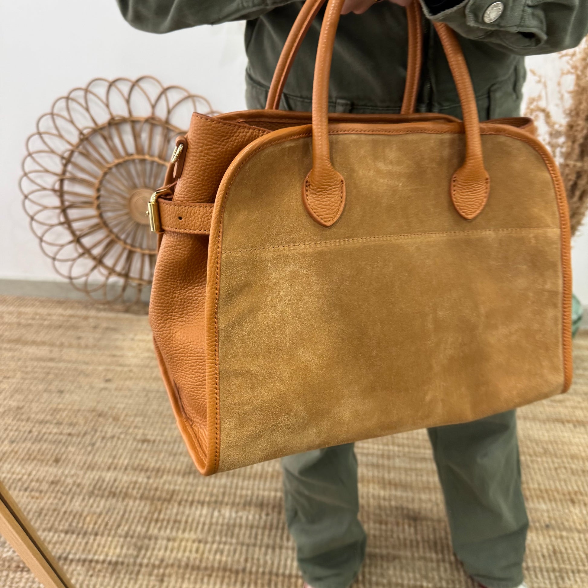 Shopper hebillas serraje y piel camel