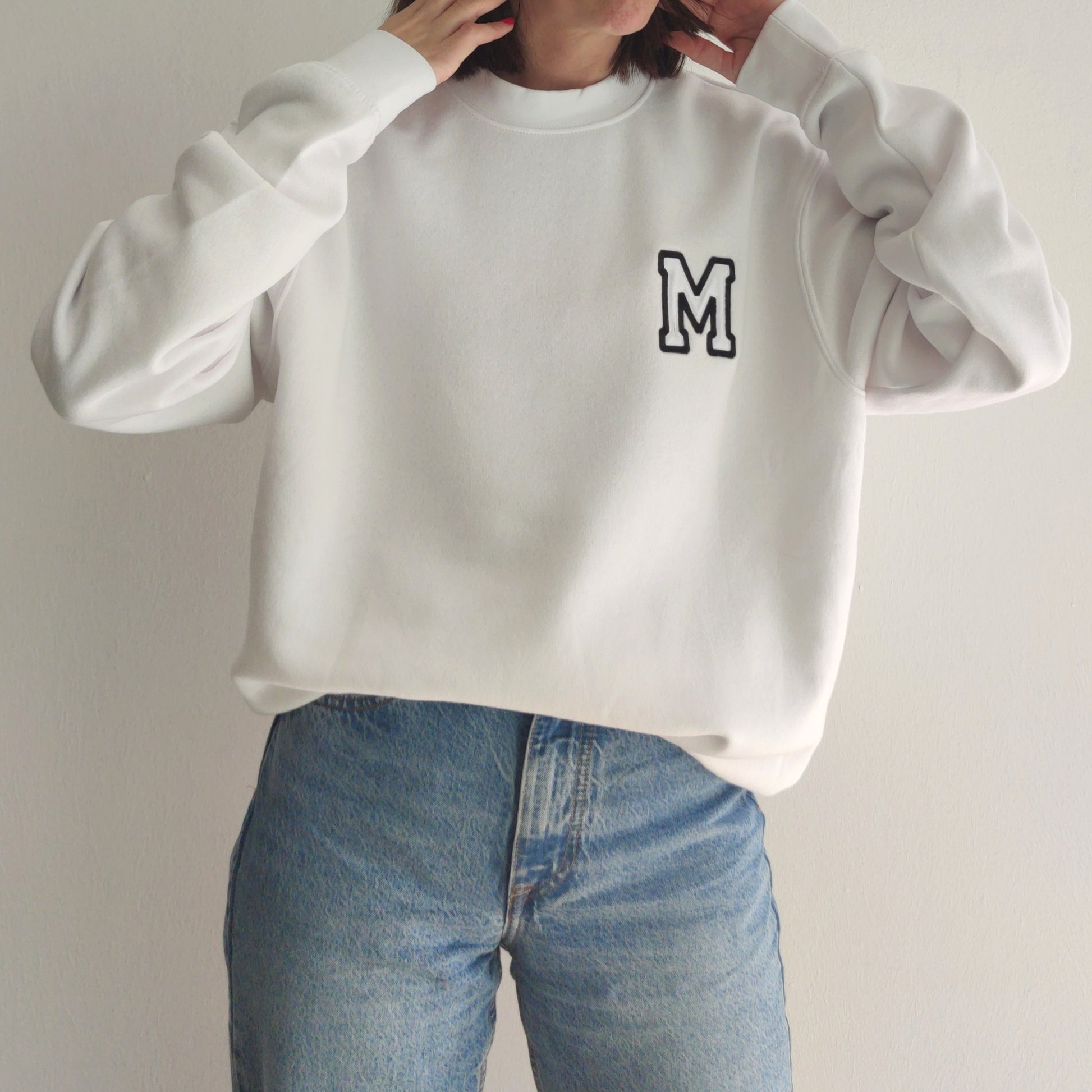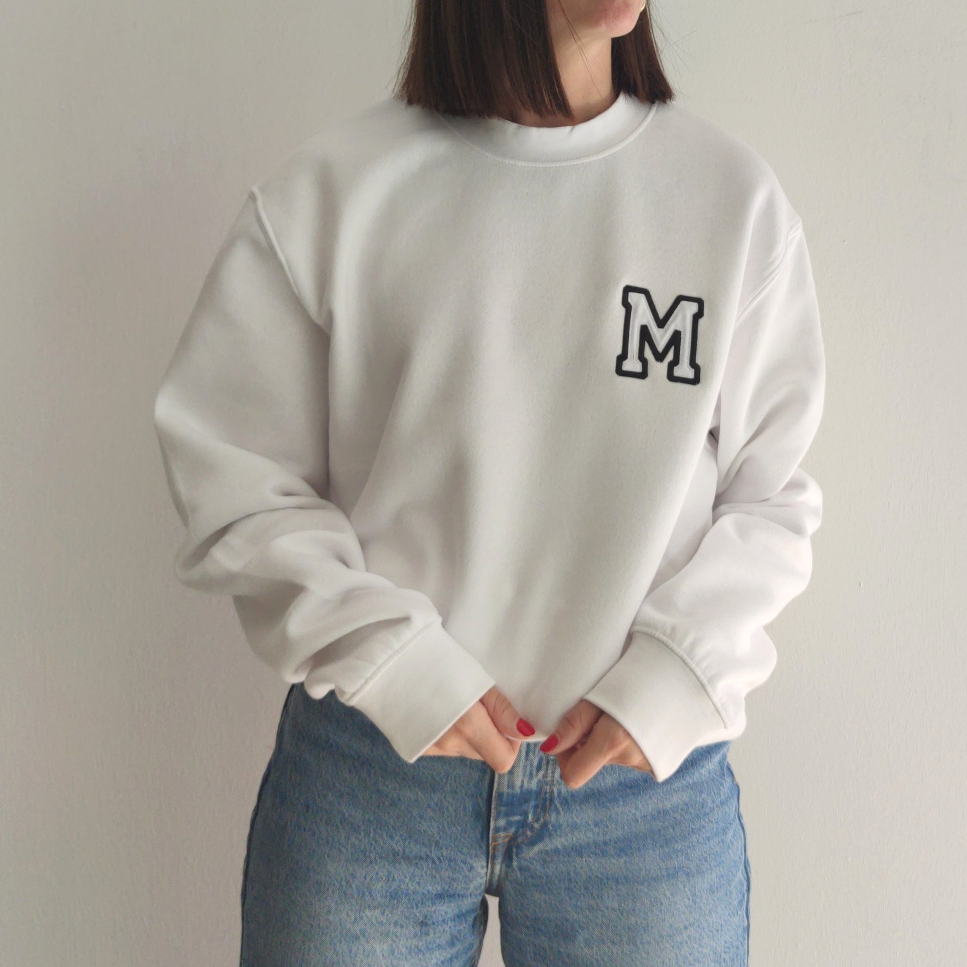 SUDADERA CUELLO REDONDO BLANCO INICIAL BORDADA