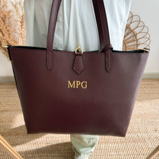 Black FridayBolso shopper piel granate cierre iniciales bordadas