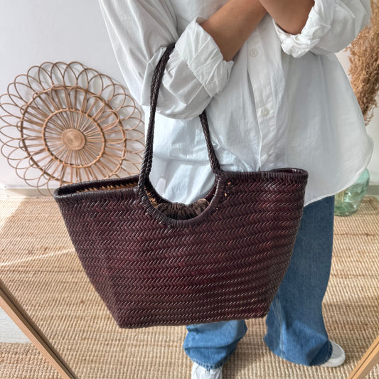 Black FridayTote estructurado en piel y serraje marrón chocolate